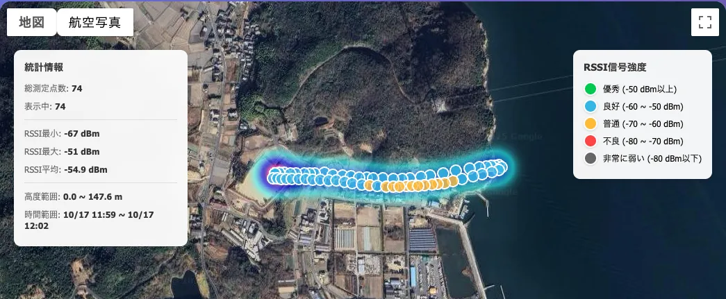- - 3Dマップ:高度情報を加えた立体的な電波強度分布