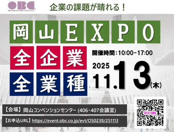 「OBC岡山EXPO」は、株式会社オービックビジネスコンサルタントが主催する業務改善や経営支援に関する展示やセミナーが行われるイベントです。参加する企業は、経営のさまざまな課題を解決するための情報を得ることができ、他の参加者とのネットワーキングも可能です。人材不足や法改正の影響で高まる業務の負担に直面する中小企業にとって、有益な情報をキャッチできる貴重な機会となるでしょう。