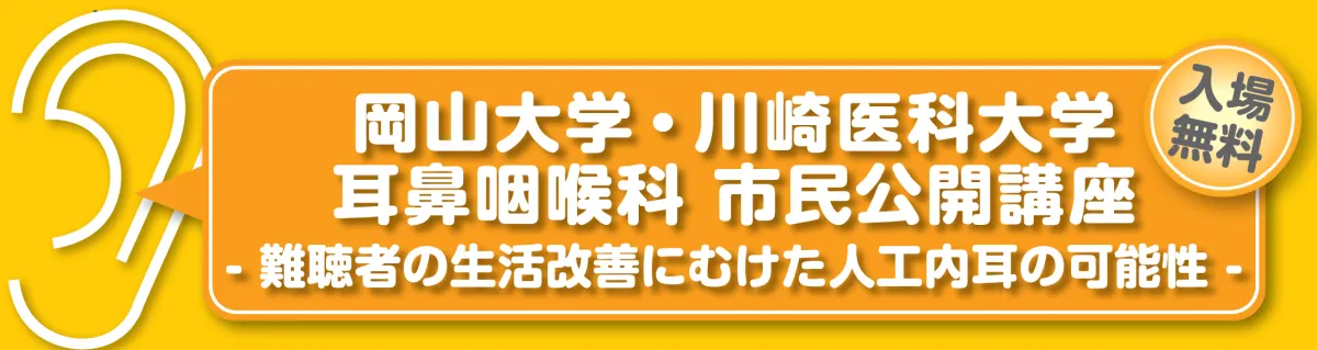 この講座は、公益社団法人 岡山県難聴者協会の主催により、岡山大学病院や川崎医科大学附属病院耳鼻咽喉科、一般社団法人人工内耳友の会ACITA岡山支部の後援で行われます。