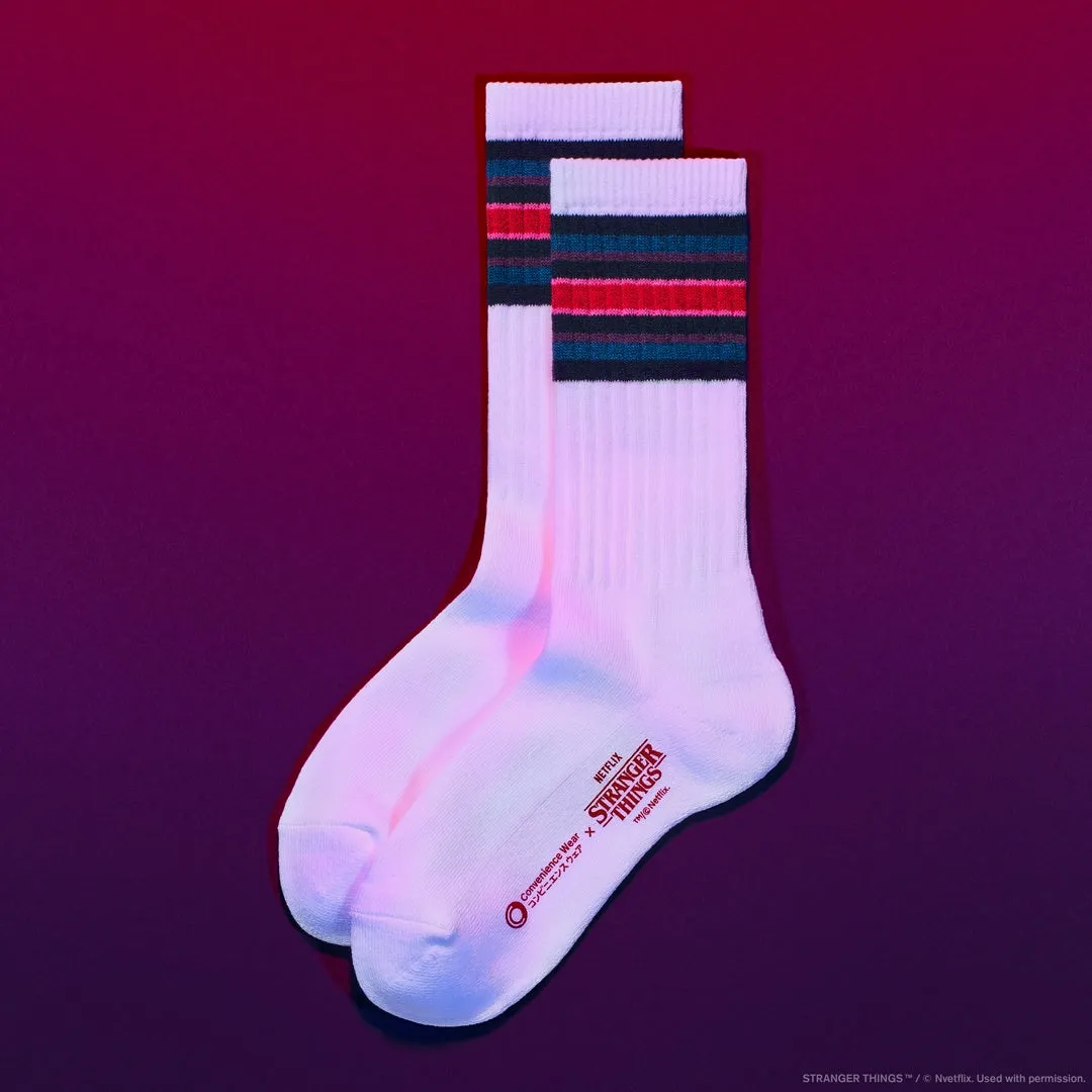 「ストレンジャー・シングス」をモチーフにしたデザインが施されたソックス。流行のストレンジャーシングスホワイトとストレンジャーシングスブラックの2色展開です。サイズは22cm-28cmの2サイズあり、さまざまな世代に対応。